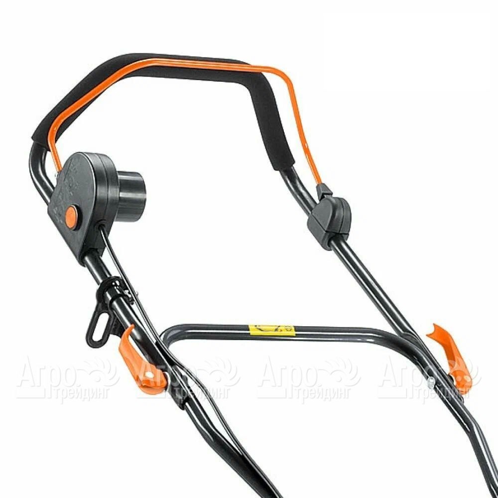 • Складная рукоятка позволяет легко хранить газонокосилку в гараже или сарае, экономя пространство.